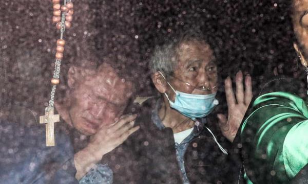 现年85岁的藤森看起来很虚弱,戴着口罩,他的律师、他的两个孩子藤森健二和藤森庆子——他的政治继承人和三次总统候选人——接待了他。在支持者的欢呼声中,藤森进入了一辆等候的汽车,他们挥舞着横幅,按喇叭,高呼“藤森自由”。