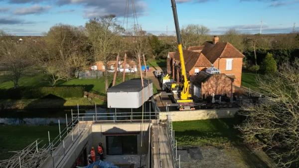 周二,脚手架工人到达了位于贝德福德郡马斯顿莫尔坦的这处房产,第二天拆除了部分屋顶,周五下午,起重机拆除了水疗池。