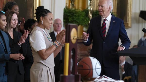 华盛顿——(美联社)——周二,乔·拜登总统在白宫表彰了2024年NCAA篮球冠军南卡罗莱纳和康涅狄格,庆祝这两个强队最近的全国冠军之旅。