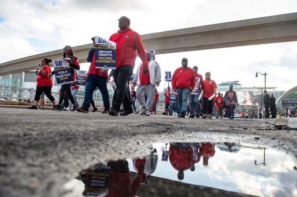 拜登此行的重点不是竞选演讲,而是访问罢工的美国汽车工人联合会(United Auto Workers)成员的纠察线。对于总统来说,这是一个不寻常的举动,但这与拜登近年来将自己描述为工党最伟大的白宫盟友的说法相符。